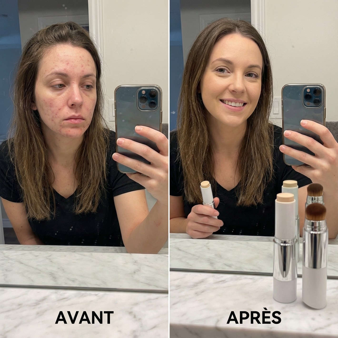 Il unifie le teint, atténue visuellement les rougeurs et petites imperfections, et laisse un rendu naturel, lisse et lumineux, sans effet masque.
